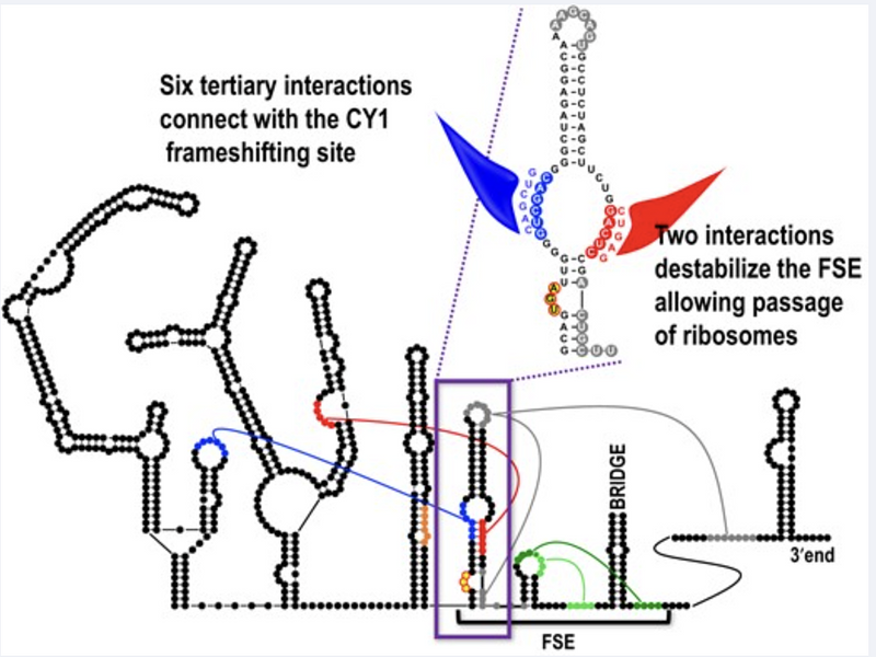 Mikkelsen, A. A., Gao, F., Carino, E., Bera, S., & Simon, A. E. (2023). -1 Programmed ribosomal frameshifting in Class 2 umbravirus-like RNAs uses multiple long-distance interactions to shift between active and inactive structures and destabilize the frameshift stimulating element. Nucleic Acids Research. https://doi.org/10.1093/nar/gkad744